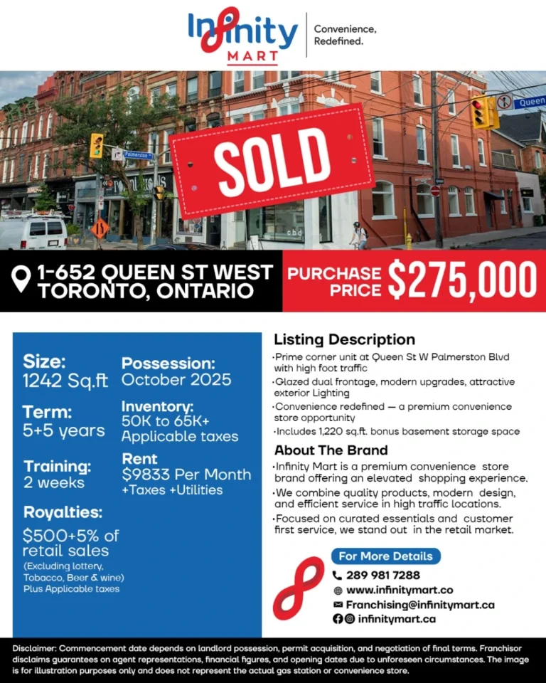 Infinity Mart Franchise in 1-652 Queen West Toronto, ON